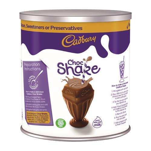 For a deliciously chocolatey milkshake, look no further than this Cadbury Choc�Shake Milkshake mix. Delivering refreshingly smooth and rich Cadbury taste, this powder mix contains no added colours, sweeteners or preservatives and is suitable for vegetarians. Simply stir 2 heaped teaspoons into a large glass of milk for instant delight. This is a bulk pack of Choc�Shake weighing 2kg.